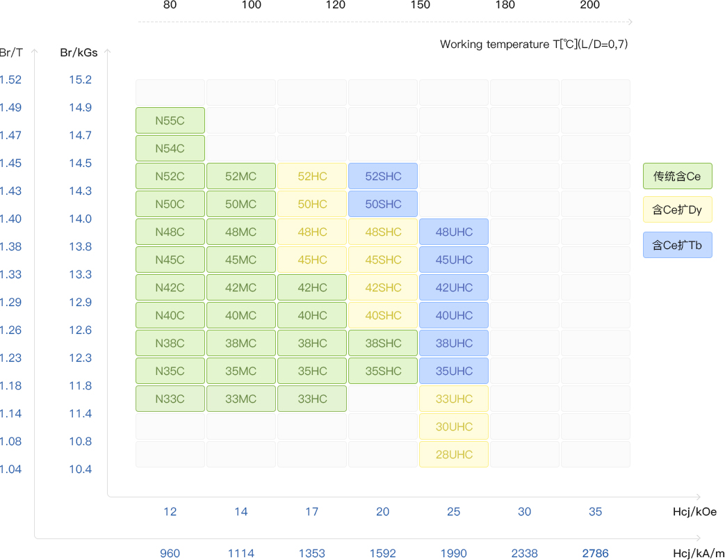 | 牌號 | Br | HcJ | HcB | (BH)max | ||||